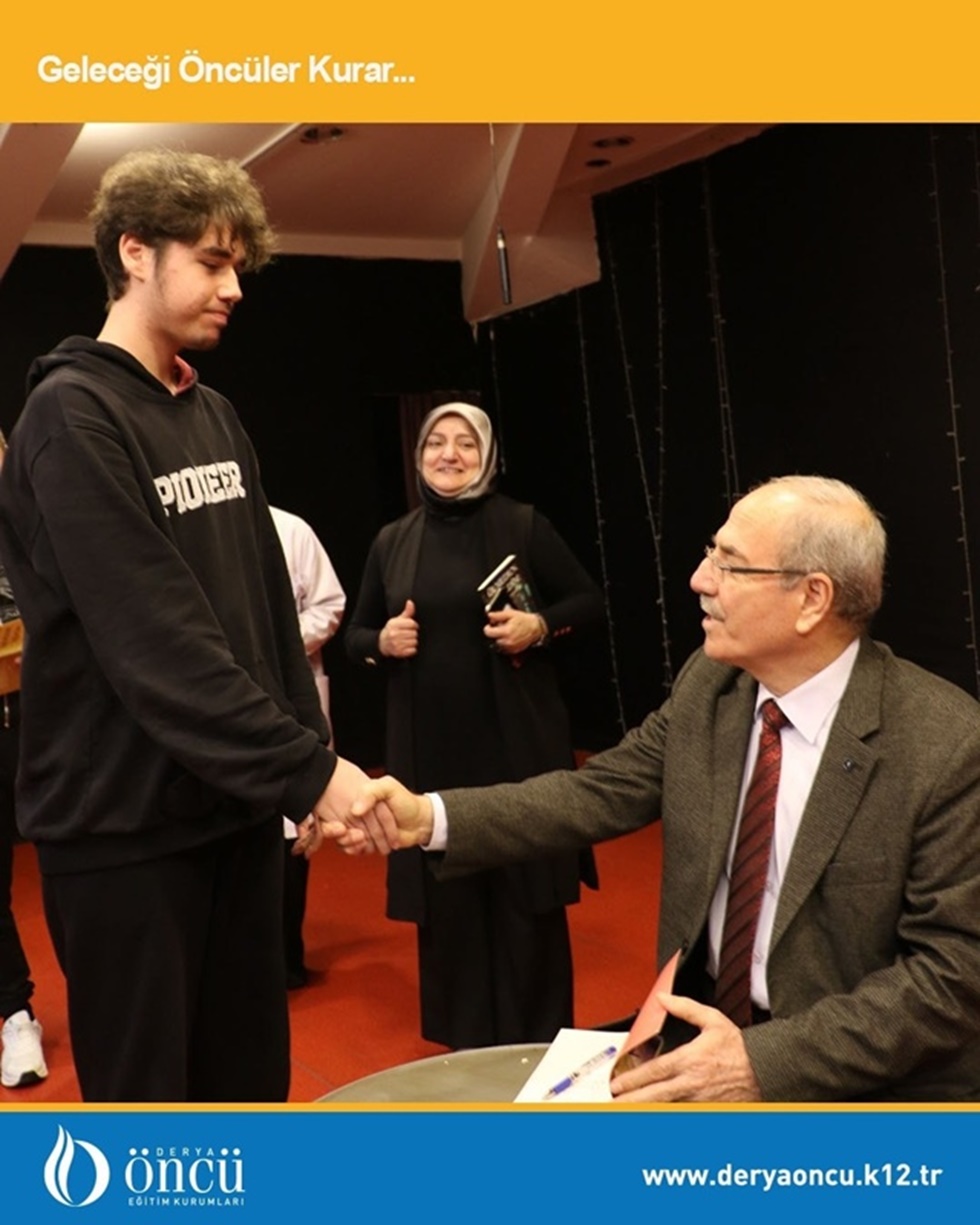 Yazar-öğrenci buluşmaları kapsamında yazar Halit Ertuğrul, Derya Öncü Anadolu Lisesi öğrenci ve öğretmenleriyle buluştu. Başarıda Moral ve Motivasyon konulu bir söyleşi gerçekleştirdi. Hayatta başarılı olmanın gereklerini anlatan Halit Ertuğrul, başarılı olmanın anne, baba ve sevdiklerine vefa borcunu ödemek için gerekli olduğunu, ayrıca toplumda ezik durumda kalmamak için, onurlu yaşamak için gerekli olduğunu söyledi. Çocukların eğitiminin en önemli bir parçasının da kitap okumak olduğunu belirten Ertuğrul, "Bugüne kadar 60'tan fazla kitap yazdım, yüzlerce konferansa katıldım. 28 kitabım farklı dillerde yayınlandı. Bir öğrenciyi bile okuma sevdasına kaptırabilirsek bizim en büyük mutluluğumuz olacaktır" dedi. Kendi hayatından kesitler veren Halit Ertuğrul sözlerine şöyle devam etti; "Ben yokluklar içinde anasız babasız büyüdüm. Bu nedenle okul harçlığımı simit satarak ve ayakkabı boyacılığı yaparak kazandım. Şimdi ise üniversitede profesörlük yapıyorum, dedi. Başarıya giden yolları örnekler ile açıklayan yazar öğrencilerden gelen soruları da cevapladı. Söyleşi sonunda kitaplarını da imzalayan Ertuğrul, söyleşiye ilgi gösterdikleri ve anlatılanları dikkatli dinledikleri için öğrencilerimize teşekkür etti.