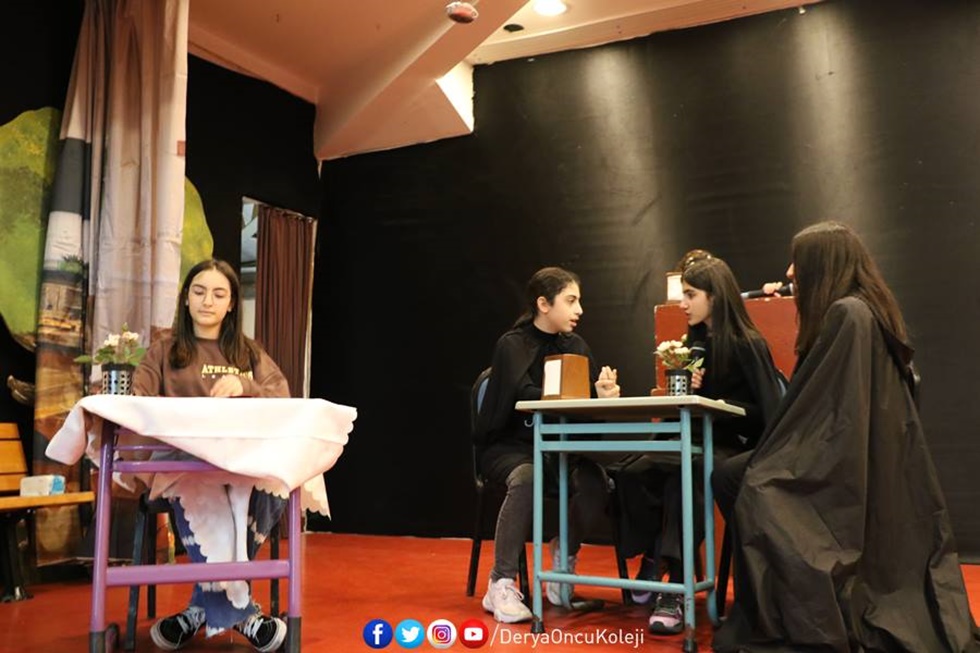 On March 25th, 2022, at Derya Öncu School, the English department organized what could be one of the most creative events a student can have. "The 10-minute contest" where our students had the chance to write their own play, decorate it and act it. With an outstanding hosting performance of our dear teacher David Granados a journey of creativity had started at the conference hall. As always Çiğdem teacher started with a short but motivating speech giving way to our host. He briefly explained the rules of the competition and introduced the juries, SEZAI ESEN, FATMA TEKEŞ and BERNA SARI. The first contestants took the stage and gave an unforgivable performance. However, our host had a surprise for all the attendees. He surprised everyone with a riddle competition. For every correct answer, he gave a delicious chocolate bar. And the show went on in this way with original plays and some chocolate bars to ease the environment. At the end the jury got together and before leaving school Çiğdem teacher announced the winner! And the winner was...6B!