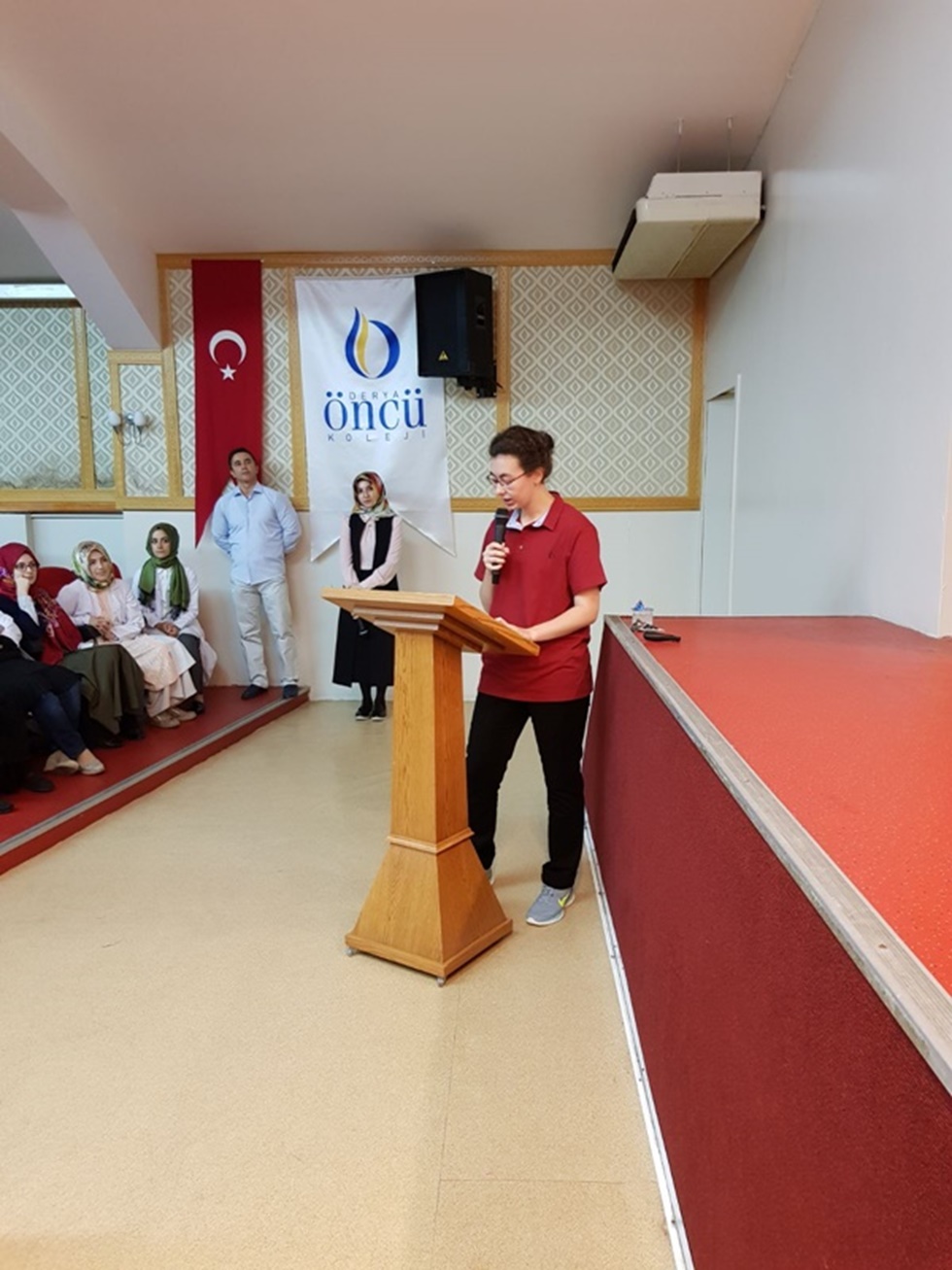 Okulumuzun ilk günü tüm öğrencilerimizi konferans salonuna alarak, açılış programı yaptık. Açılışımızda lise son sınıflardan Asude Ukba Teker adlı öğrencimiz Özel Derya Öncü Anadolu Lisesi atmosferi hakkında bir konuşma yaptı. 15 Temmuz şehitlerimizi ve vefat eden İsmail Hakkı Şengüler ile Burak Karahan adlı öğrencimizi rahmetle andık. Günün anlam ve önemi ile ilgili iki öğrencimiz şiir okudu. Okulumuz Müdürü Fatih Özdemir ile Genel Müdürümüz Haydar Temel Beyler öğrencilerimize hoş geldiniz diyerek yeni eğitim öğretim yılımızın hayırlı olması temennilerinde bulundular.