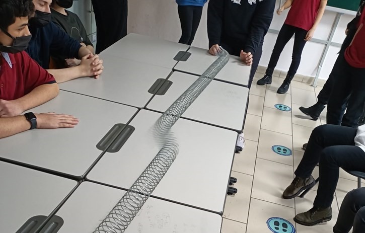 Sınıf ortamında ince ve kalın yaylar kullanarak öğrencilerimizle birlikte Enine ve Boyuna...