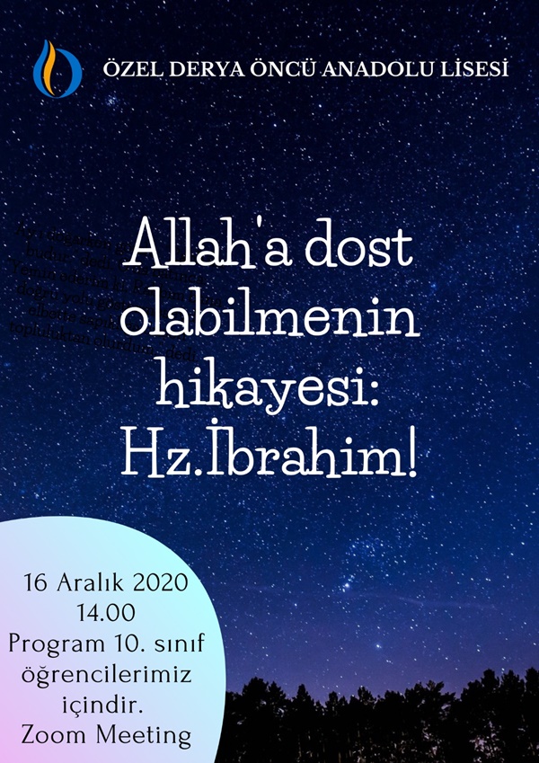 "Allah'a dost olabilmenin hikayesi: Hz. İbrahim!" başlığıyla serinin ikincisi olan programımız 16 Aralık Çarşamba günü saat 14.00'te online olarak gerçekleştirilecektir. Katılımlarınızı bekleriz.