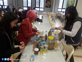 Fen ve Matematik zümresinin koordinatörlüğünde yürütülen eko okul projesi kapsamında okulumuzda atık yağ ve plastik toplama kampanyası düzenledik.Okulda düzenlediğimiz etkinliğimizde sinemaya giriş bileti olarak plastik atıklar kullanıldı. Geri dönüşüme kazandırmak üzere evlerinden plastik atık getiren öğrenciler film izlemeye hak kazanmış oldular. Öğrencilerimizi yağ toplama kampanyasına teşvik etmek için okulda yapılan film gösterimi öncesinde plastik atık yanında atık yağ getiren öğrenciler arasında çekiliş yapıldı. Çekiliş sonunda kazanan 3 öğrenciye ödülleri verildi.Kampanya sonunda belediyeyi arayarak topladığımız atık yağları ve plastikleri geri dönüştürülmek üzere görevlilere teslim ettik.
