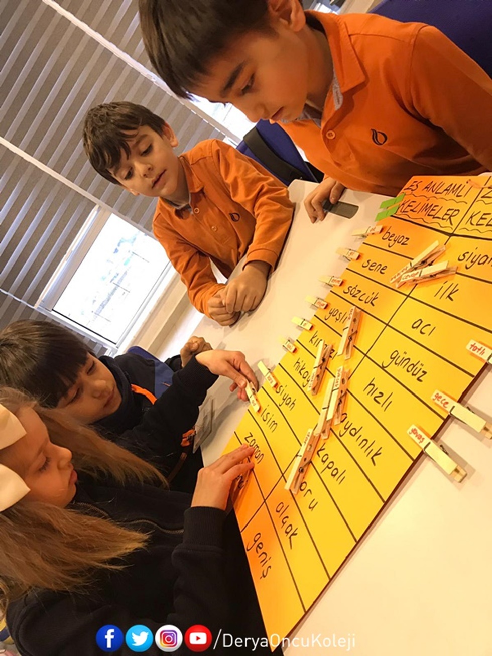 1.sınıflarımıza güzel dilimiz Türkçe'nin inceliklerini öğretmeye devam ediyoruz. Dilbilgisi konularını eğlenceli etkinliklerle renklendiriyoruz. "Bul Kelimeyi Tak Mandalı" oyunumuzu oynayan öğrencilerimiz kelimelerin eş ve zıt anlamalarını eğlenerek öğrenmiş oluyorlar.