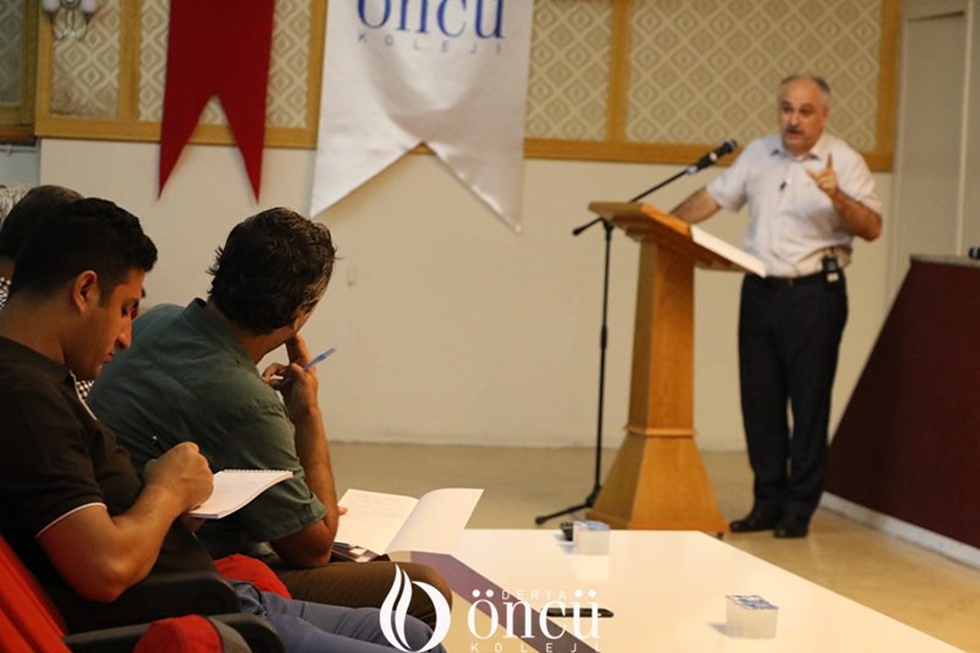 Prof. Dr. İhsan Fazlıoğlu hizmet içi eğitim çalışmalarımız kapsamında "Niçin Cevheri Mücevher Yapamıyoruz" başlıklı bir konferans verdi. Derya Öncü Üsküdar Kampüsünde tüm öğretmenlerimizin katılımı ile gerçekleştirilen programda konuşmasına kavramsal analizlerde bulunarak başlayan Fazlıoğlu, bu bağlamda cevher kavramının "maden filizine verilen ad,öz" olduğunu, cevherin işlenmiş haline mücevher dendiğini, bu iki hal arasında bulunan dönemin ise işlik/ atölye diye isimlendirildiğini ifade etti.