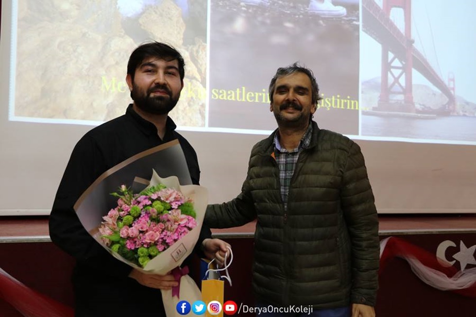 Şahsiyet Akademisi ile işbirliği içinde gerçekleştireceğimiz seminerlerin ilkinde eğitim tasarım uzmanı Abdullah Sak'ı konuk ettik. İnsan ve Zaman başlıklı seminerimizde, insan ve zaman ilişkisine çeşitli boyutlarıyla değinen konuğumuz öğrencilerimizin dikkatini düzenli bir hayatın önemine çekerken gençlik zamanında geçen zamanın kıymetini hatırlatmış oldu.