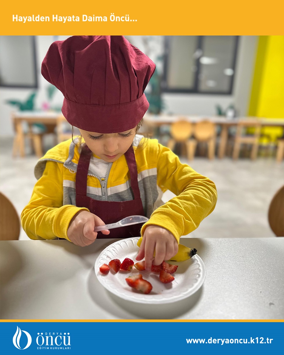 Lezzetli Bir Öğrenme Deneyimi! Minik öğrencilerimiz İngilizce dersinde kendi meyve salatalarını hazırlayarak keyifli bir etkinlik gerçekleştirdiler!
