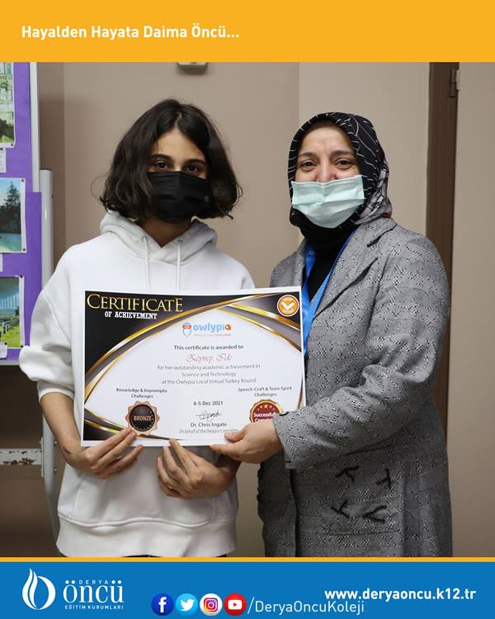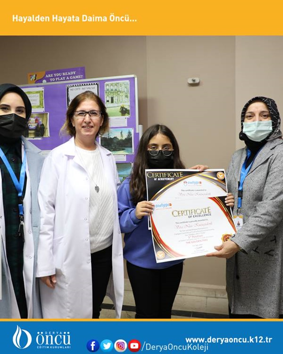 Our Owlypia adventure started back in October 2021. There was thorough selection for the students that would represent our school.Owlypia is an international Intellectual Challenge competition. Our children, guided by the English Department teachers, had to research various resources such as boks, articles, movies, and videos about "Science and Technology". The theme this year was "Innovation" so our champions had to prepare for weeks to have a great performance. The contest was held on December 4th and 5th ,2021. There were four stages our brave warriors had to confront : Impromptu Challenge, Knowledge Challenge and Team Spirit Challenge. At the end Derya Öncü School participant were able to win a precious amount of medals both individually and as a group. We thanked our students for their great success.
