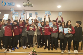 Okur -Yazar etkinliği kapsamında "Zamane Kedisi Fildir " adlı eseriyle cocuklarimiza hayvan sevgisi kazandırırken dini ve kültürel öğeleri de serpistirerek onlara farkındalık kazandıran Tuğba Özbalak Hanımefendiyi okulumuzda ağarladık.5 ve 6.sınıf öğrencilerimizle gerçekleştirdiği söyleşiyle çocuklarımıza büyük katkı sağladığını düşündüğümüz yazarımıza emeklerinden dolayi teşekkürü bir borç biliz.