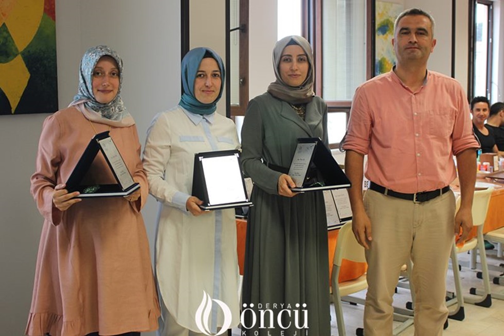 Eğitimde ve çalışma hayatında sürekliliğe önem veren okulumuz; on, on beş ve yirmi yıldır canını dişine takarak kendisine destek olan çalışanlarına plaket ve çeşitli hediyeler takdim etti. Bizler de Derya Öncü ailesi olarak kurumumuzun ilerlemesi ve adını geleceğe yazdırmasında emekleri olan çalışanlarımıza bir kez daha yürekten teşekkür ediyor, aileleriyle birlikte mutlu ve huzur dolu yarınlarda ömürlerini geçirmelerini temenni ediyoruz.