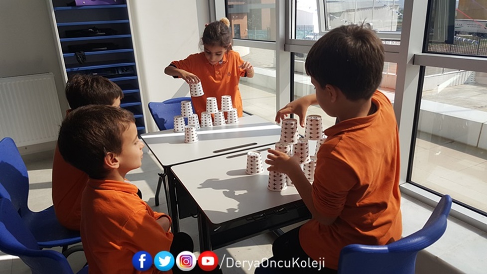 Öğrencilerimizin ders içinde aktif olmalarını ve öğrenme faaliyetlerine severek katılmalarını sağlamak amacıyla işlediğimiz konularla ilgili oyunlar oynuyoruz. Ritmik saymalarla ilgili oynadığımız bardaktan kule yapma oyunuyla hem eğlendiler hem de ritmik saymalarını hızlandırdılar.