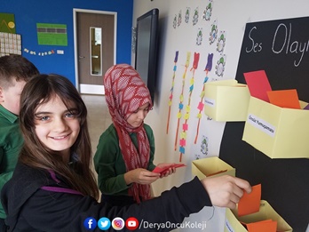 Türkçe dersinde dil bilgisi konularını işlerken konuyu pekiştirmek ve öğrenirken eğlenmek amacıyla farklı etkinlikler yapıyoruz. Bu hafta ses bilgisi etkinliğimizde renkli kâğıtlarda yazan kelimelerin hangi ses olayına uğradığını bularak uygun kutuya yerleştirdik. Ses bilgisi etkinliğimiz öğrencilerimizin öğrendiklerini pekiştirmesinde etkili oldu.