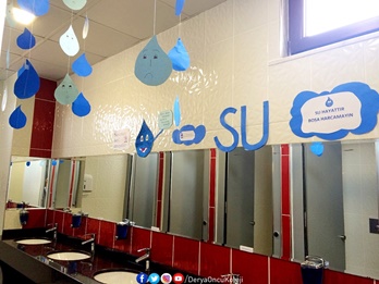 Öğrenciler, su tasarrufuna dikkat çekmek amacıyla okulumuzun lavabolarına renkli uyarıcı çalışmalar hazırladı. Bu çalışmalar ilkokul bölümündeki lavabolara Eko-okul koordinatörü öğretmenimiz yardımıyla yerleştirildi.