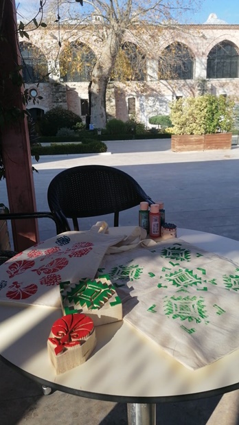 Müze içindeki etkinliklerden sonra müze bahçesinde öğrencilerimizle ahşap baskı atölyesi gerçekleştirdik. Ahşap baskı sanatı, malzemeleri, kültürümüzdeki yeri hakkında yapılan kısa bir bilgilendirmeden sonra öğrencilerimiz müzede gördükleri geleneksel desen ve figürlere uygun çalışmalar yaptık.