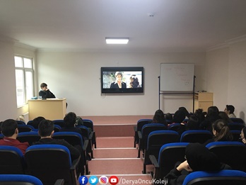 Anlatımları çeşitli görsel materyallerle de süsledik. Seminer salonunda gerçekleştirdiğimiz bu söyleşimizde tüm 9. sınıflarımıza ev sahipliği yaptık.